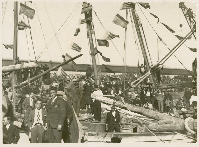 En el puerto les esperaba los acorazados Jaime I y los barcos Churruca y Alcalá Galiano. Los restos del escritor valenciano se embarcaron en el Jaime I con los honores establecidos.